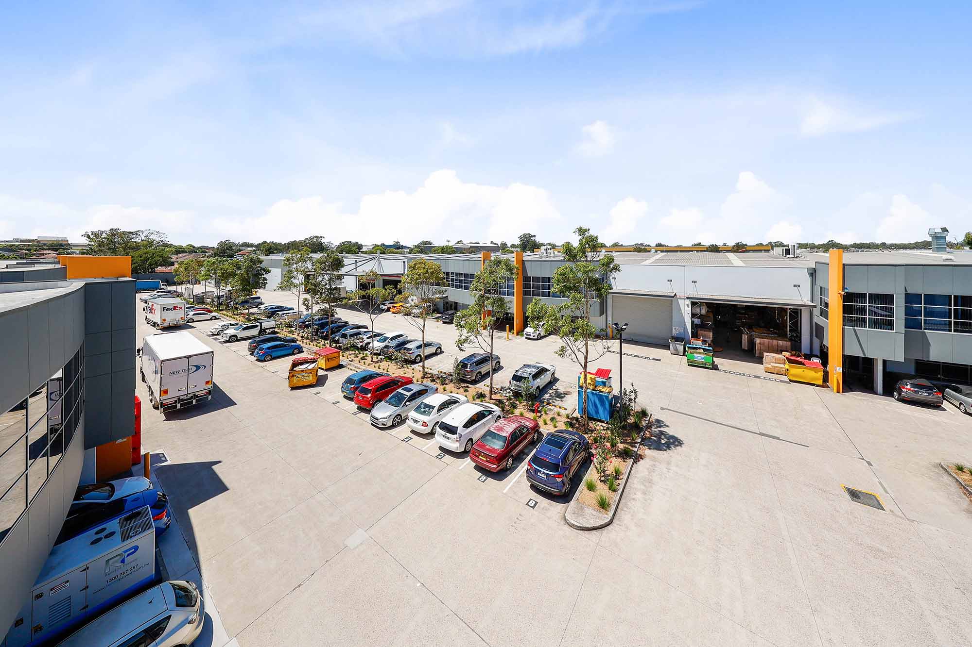 This property is a 2008 industrial complex known as Bankstown M5 Business Park comprising 9 office and warehouse units, a cold storage logistics facility, a café, and onsite parking for approximately 141 cars.